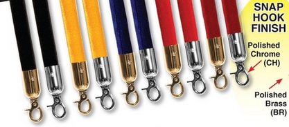 Rope Snaps are attached at the factory, and can be matched to any finish. Standard models include Mirror Brass, Bright Chrome, and Satin Nickel (Brushed Stainless Steel).